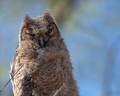 Great Horned Owls are really lovely owls. They have tufts on their ears and bright yellow eyes. Usually I know one is around when the crows and blue jays are making a racket. I've seen crows harass an owl and it's not unusual! They are the heaviest of owls in the US and the second largest. They have a really big appetite and are opportunistic hunters.