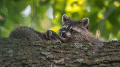Something else that really had me quite fascinated this week was seeing a group of raccoons, a mother and her babies. They were at the water's edge and then walked further back into the woods, the mother hurrying them up a tree when she saw me walking by.